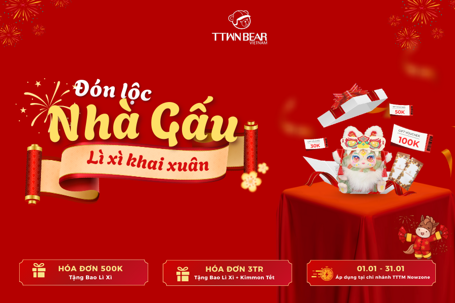 Thấu hiểu tinh thần đó, Nhà Gấu – TTWN BEAR Việt Nam mang đến chương trình khuyến mãi khai xuân đặc biệt, giúp khách hàng vừa chọn được sản phẩm yêu thích, vừa nhận lộc đầu năm đầy ý nghĩa.
